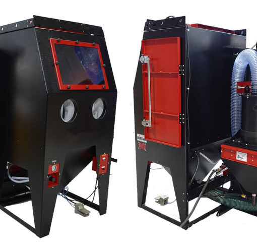 Abrasive Blasting Cabinet System for semi-industrial, automotive, manufacturing after market operations. Canadian-made blast cabinet with heavy-duty welded steel construction.